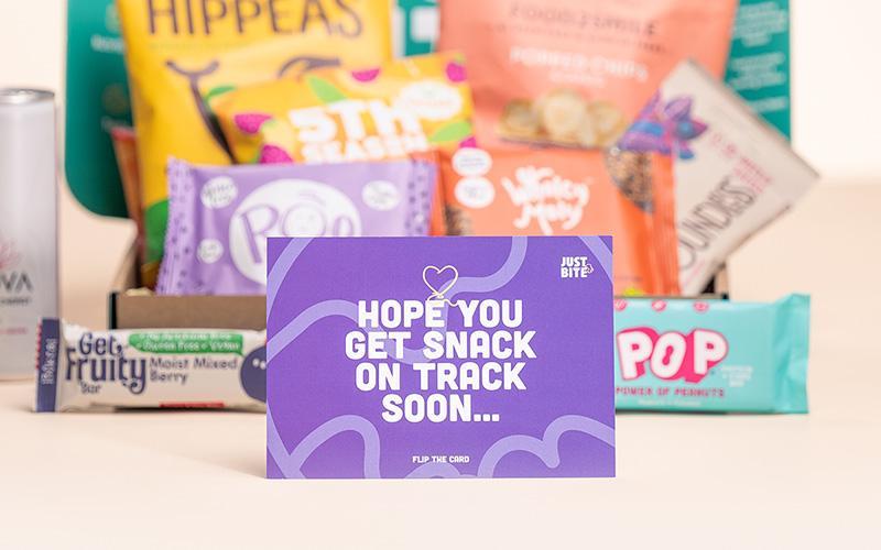 Beterschapsgeschenk met 9 gezondere snacks en 1 drankje